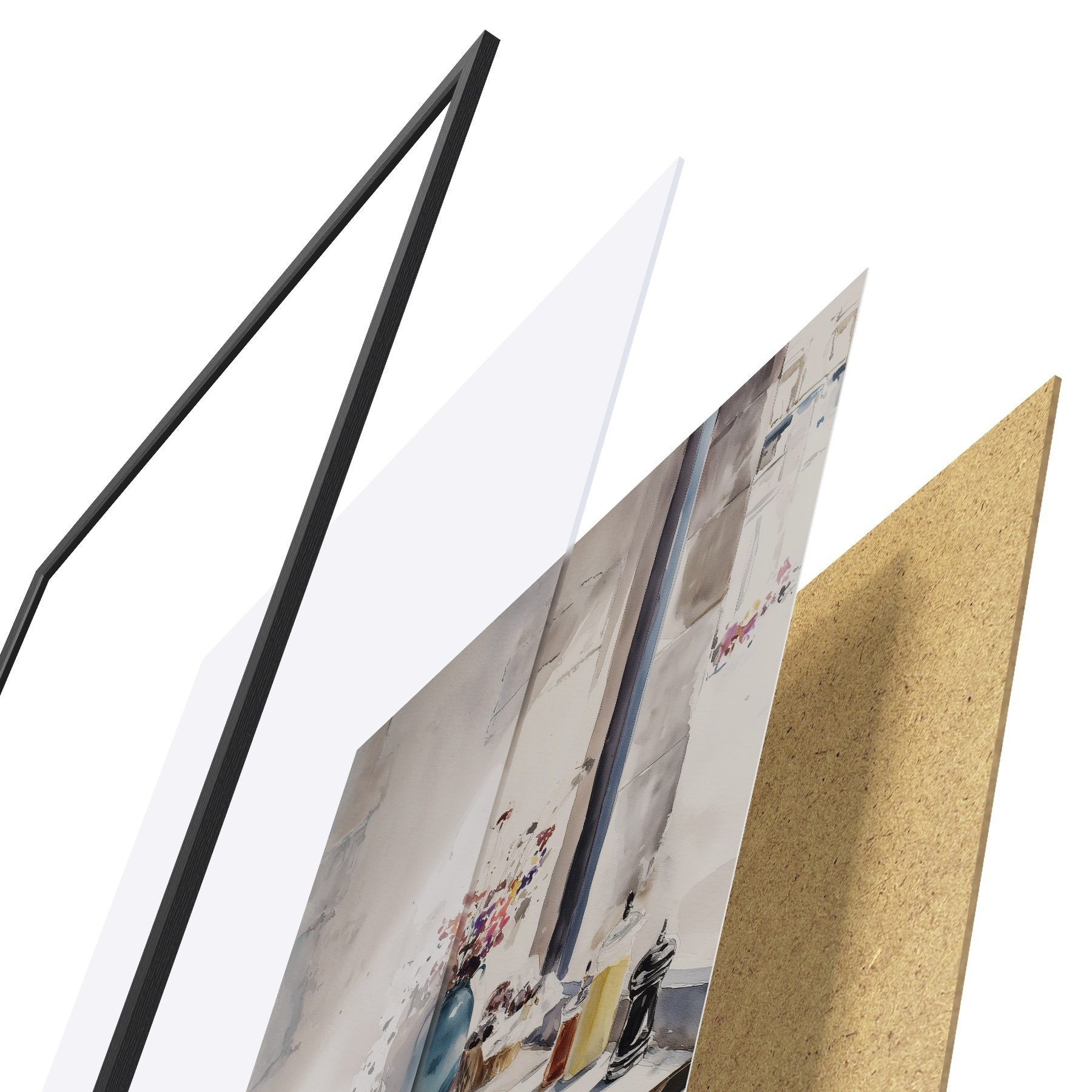 Il poster è composto da cornice, plexiglass, immagine stampata e supporto in truciolato. Il poster può essere immediatamente appeso alla parete grazie ai supporti sul retro.
