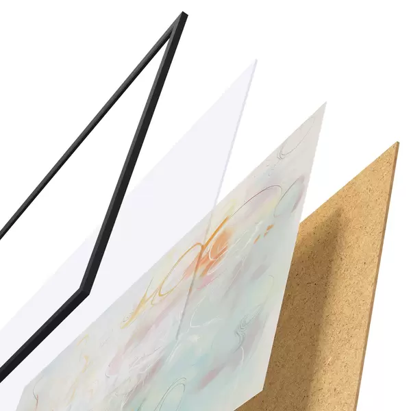Il poster è composto da cornice, plexiglass, immagine stampata e supporto in truciolato. Il poster può essere immediatamente appeso alla parete grazie ai supporti sul retro.