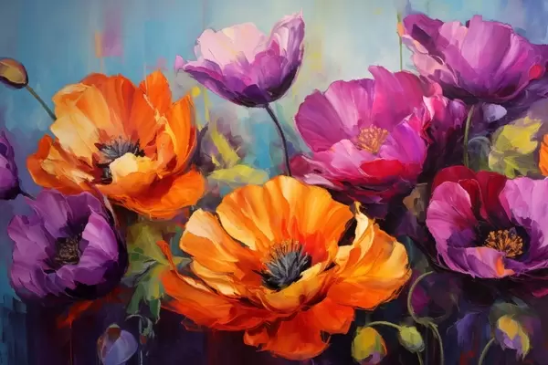 Poster Papaveri dai colori vivaci nelle tonalità del viola e dell'arancione Nr f45804