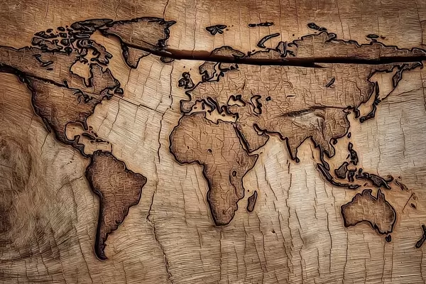 Poster Mappa del mondo incisa su legno Nr f45805