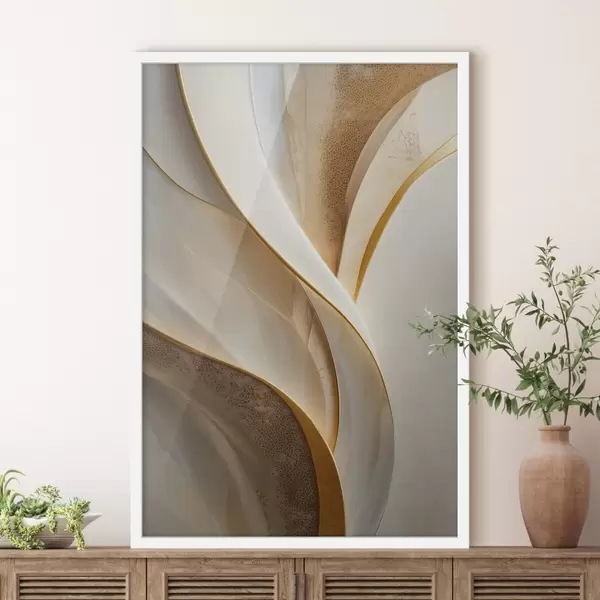 Poster Curve astratte con accenti giallo-arancio e beige Nr f45807