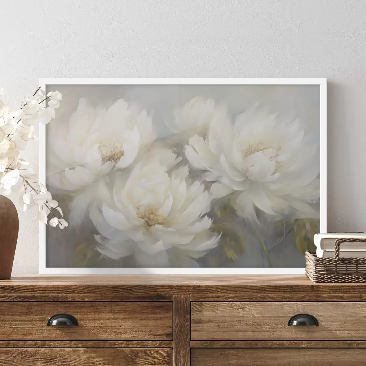 Poster Tre rigogliose peonie bianche su uno sfondo delicato Nr f45808