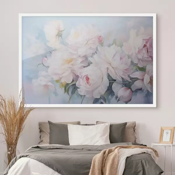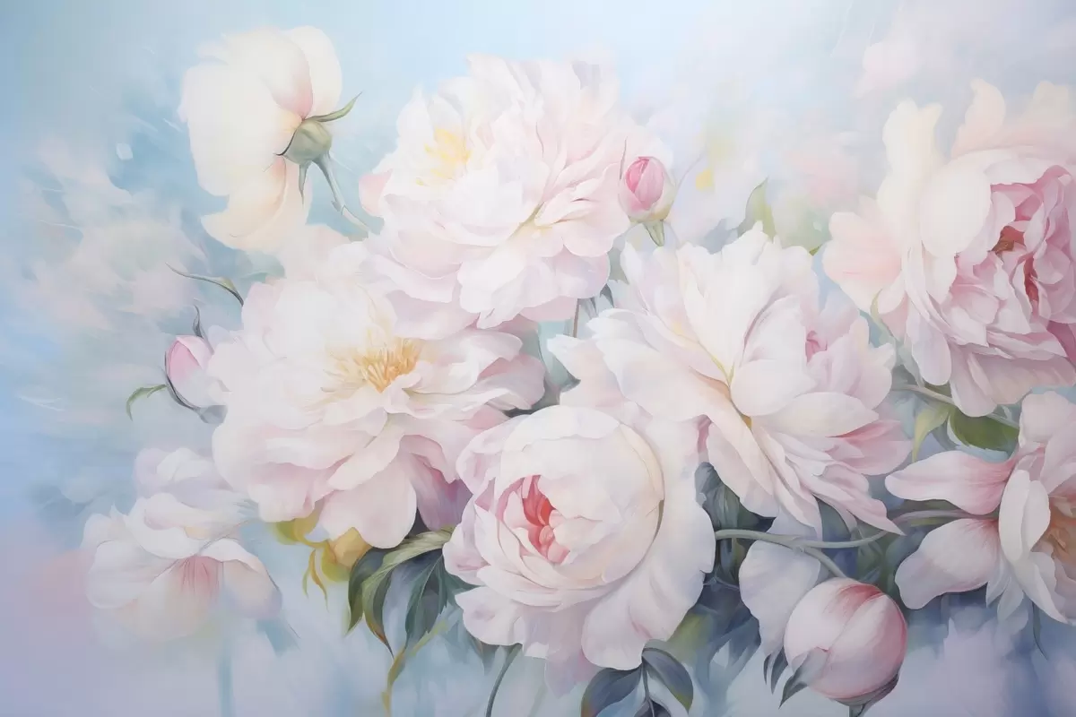 Poster Delicate peonie rosa su sfondo azzurro cielo Nr f45813