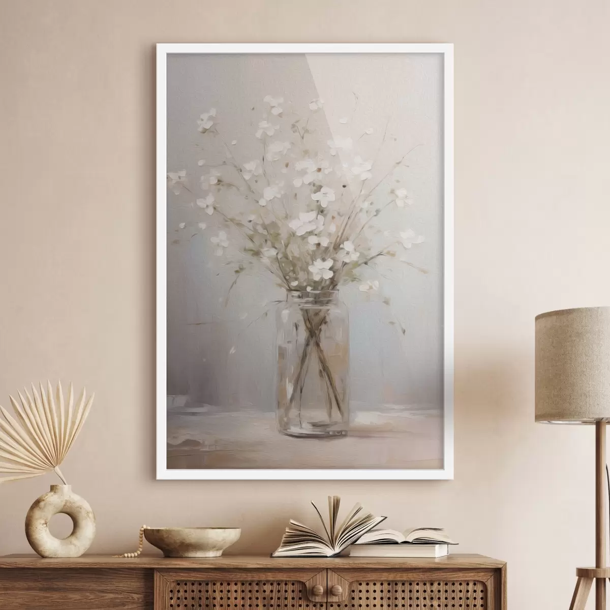 Poster Un bouquet di fiori bianchi in un vaso di vetro trasparente Nr f45814