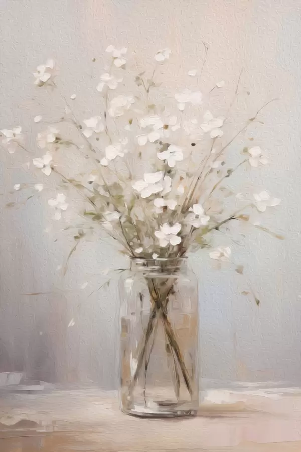Poster Un bouquet di fiori bianchi in un vaso di vetro trasparente Nr f45814