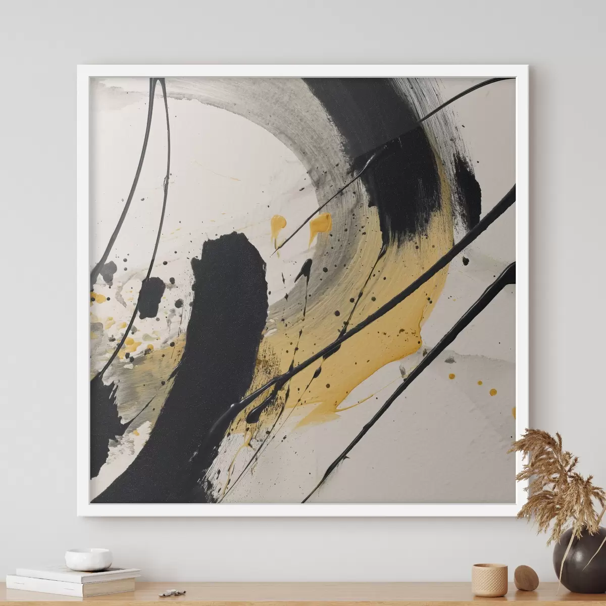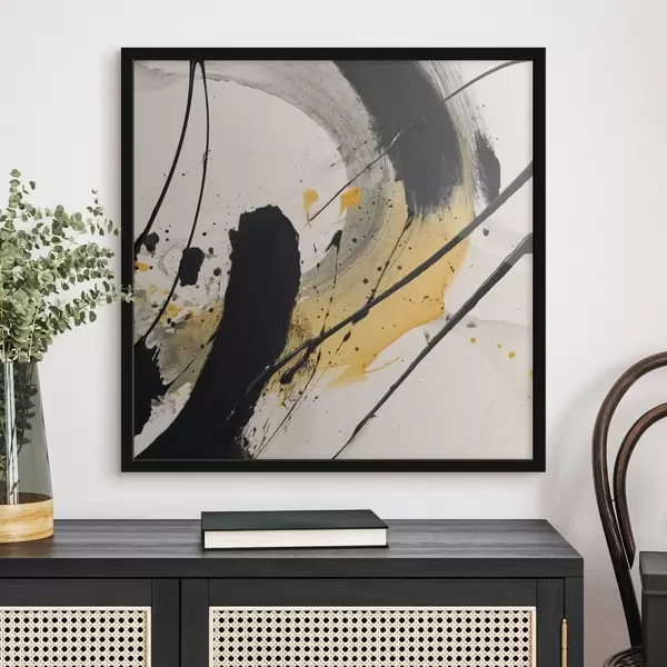 Poster Espressione in stile pittorico nero e giallo f45847