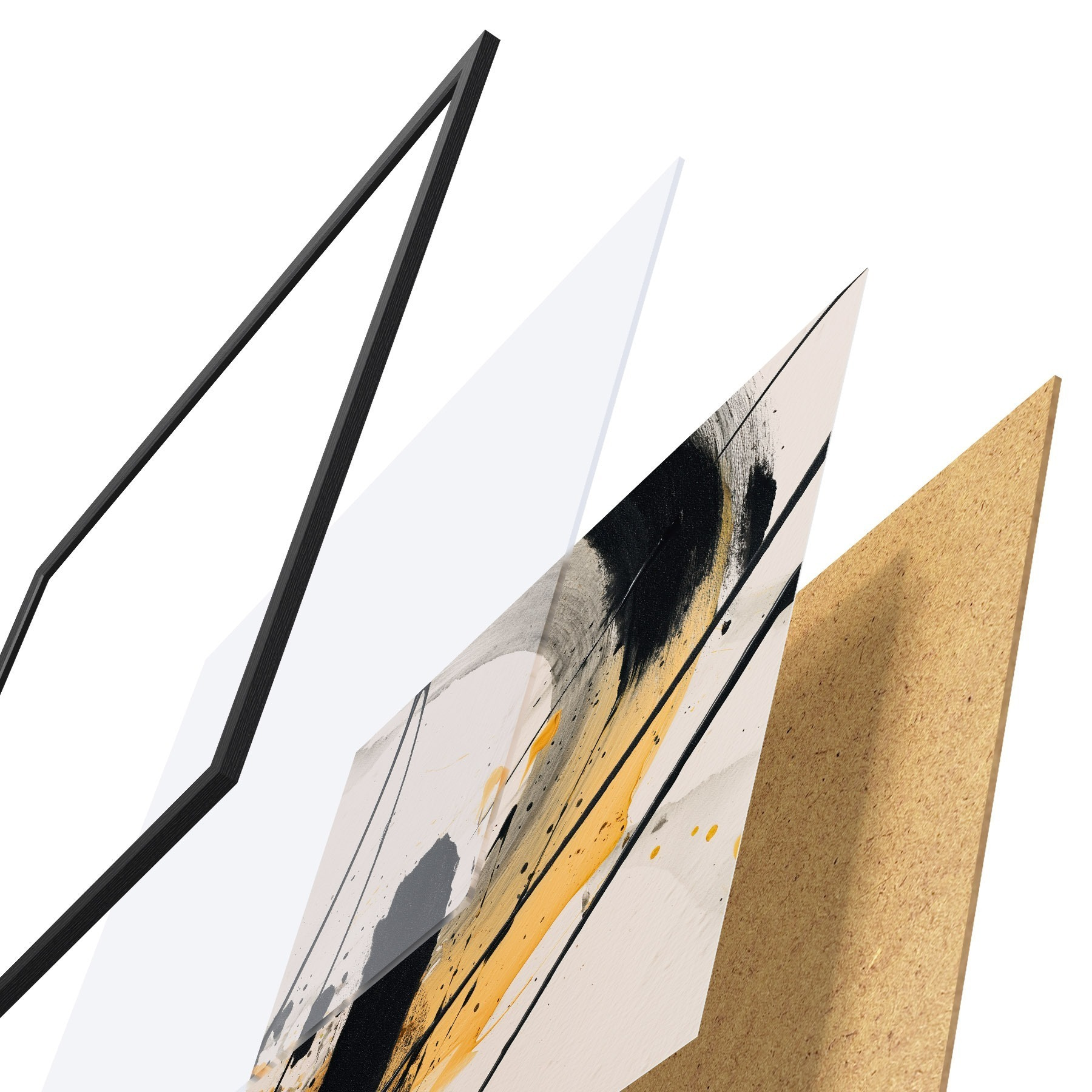Il poster è composto da cornice, plexiglass, immagine stampata e supporto in truciolato. Il poster può essere immediatamente appeso alla parete grazie ai supporti sul retro.