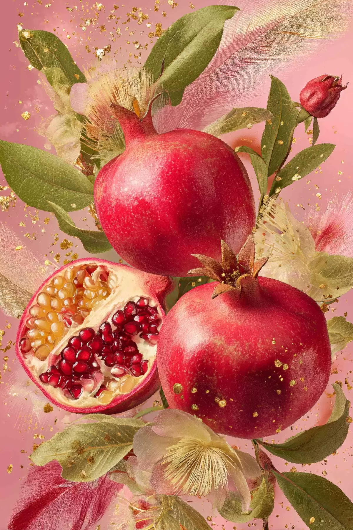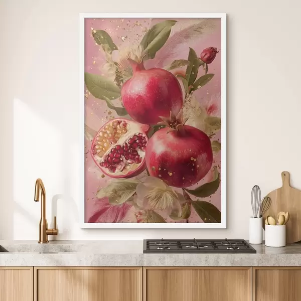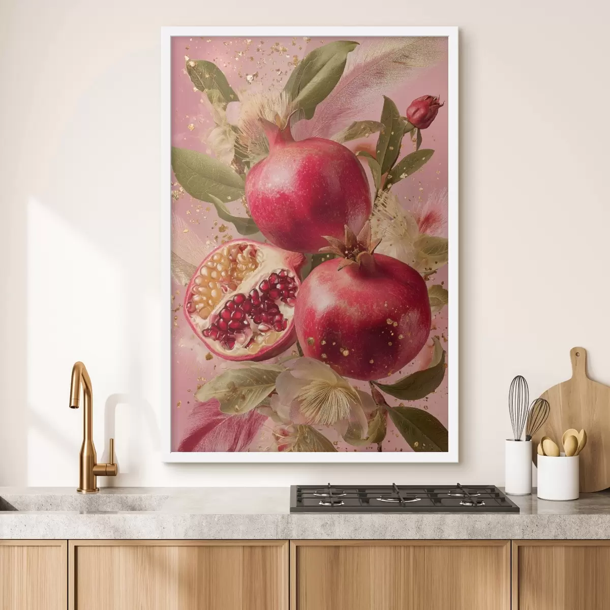 Poster Meloni maturi su sfondo rosa con foglie e macchie Nr f45868