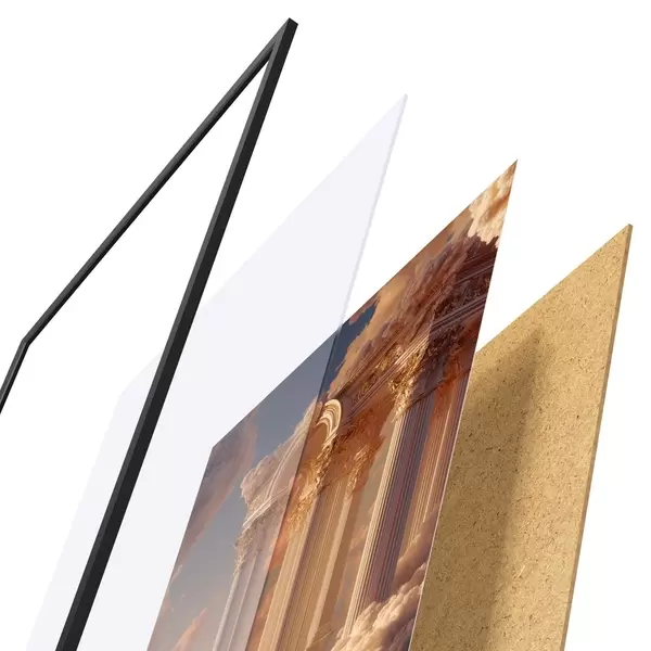 Il poster è composto da cornice, plexiglass, immagine stampata e supporto in truciolato. Il poster può essere immediatamente appeso alla parete grazie ai supporti sul retro.