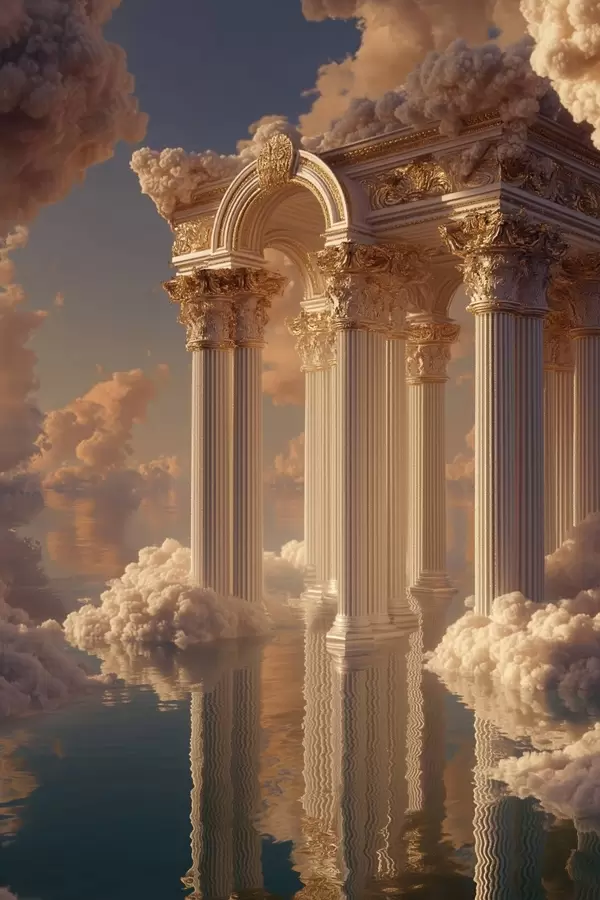 Poster Colonne tra le nuvole, riflessi sull'acqua f45881