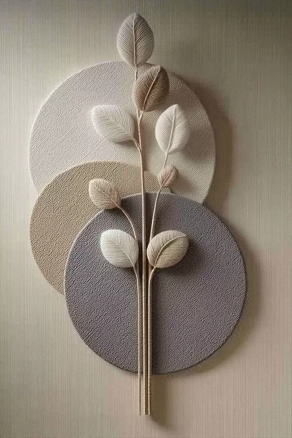 Poster Cerchi in rilievo e un ramo in toni neutri caldi Nr f45883