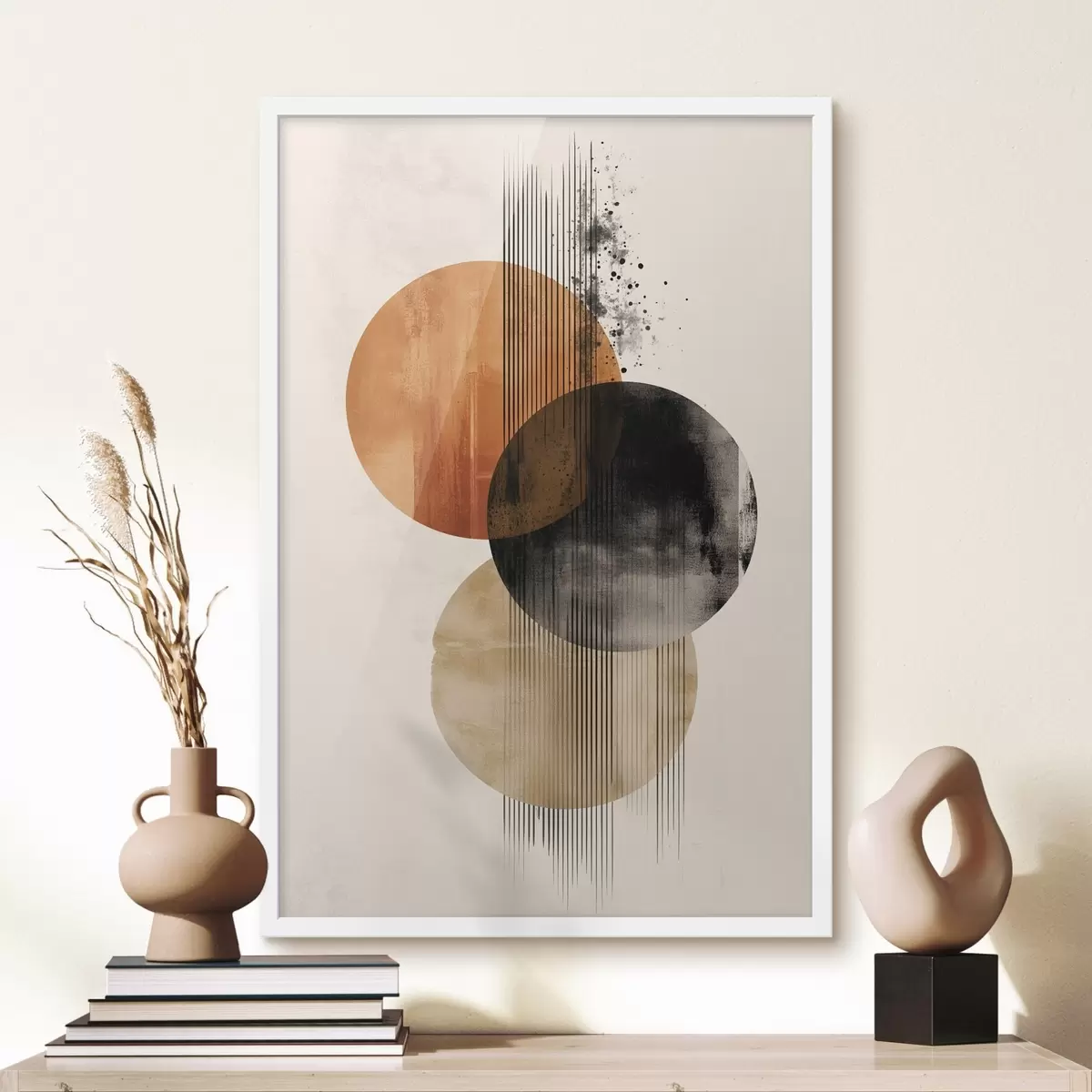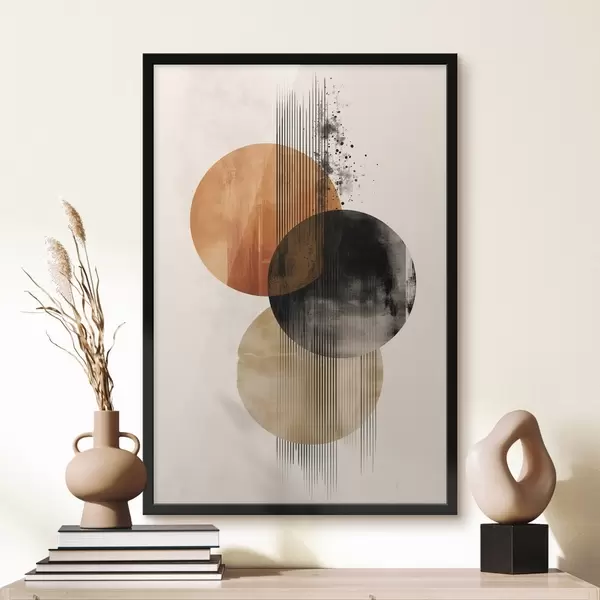 Poster Tre cerchi testurizzati con linee in una palette di colori terracotta-nero f45885