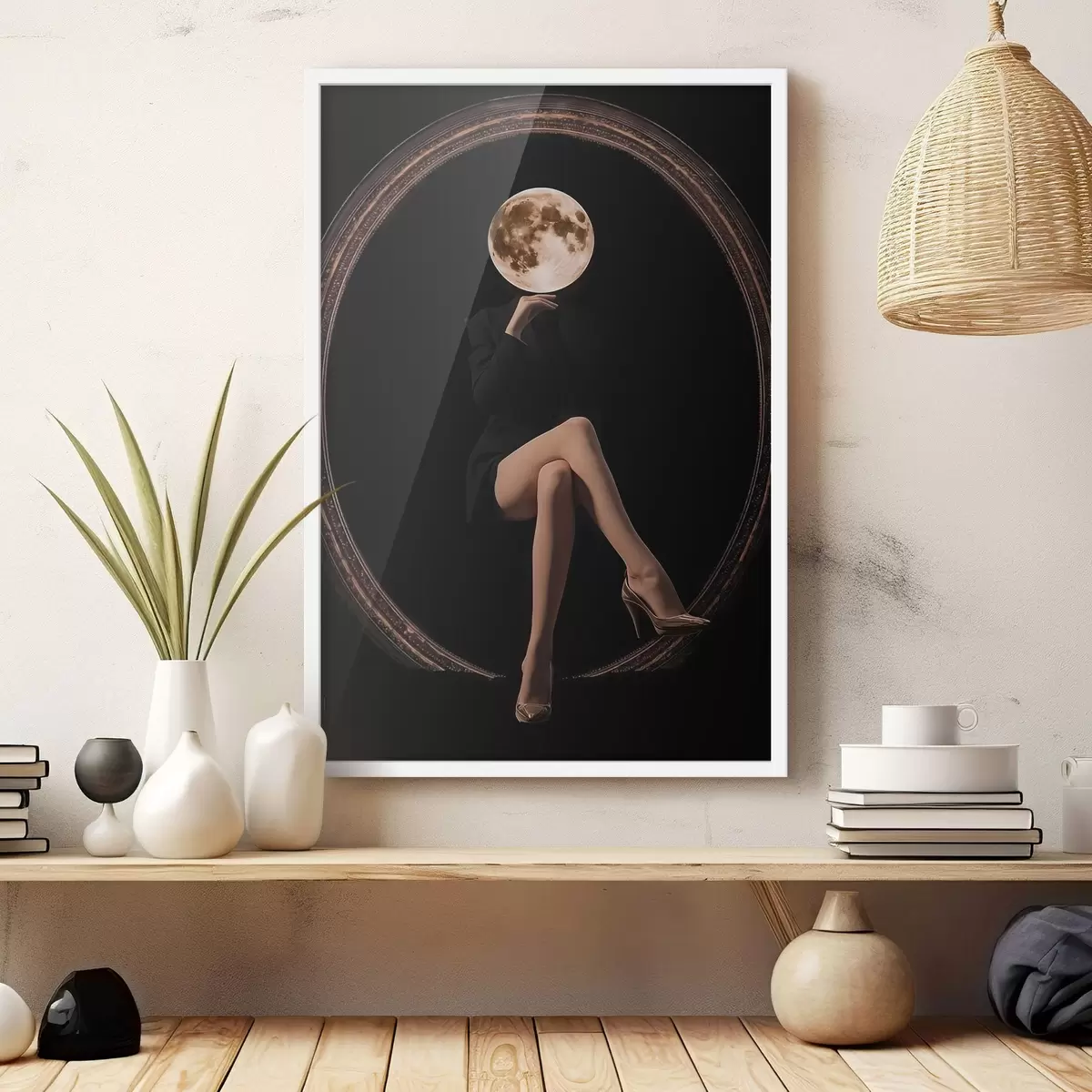 Poster Silhouette con la luna al posto del viso, minimalismo f45891