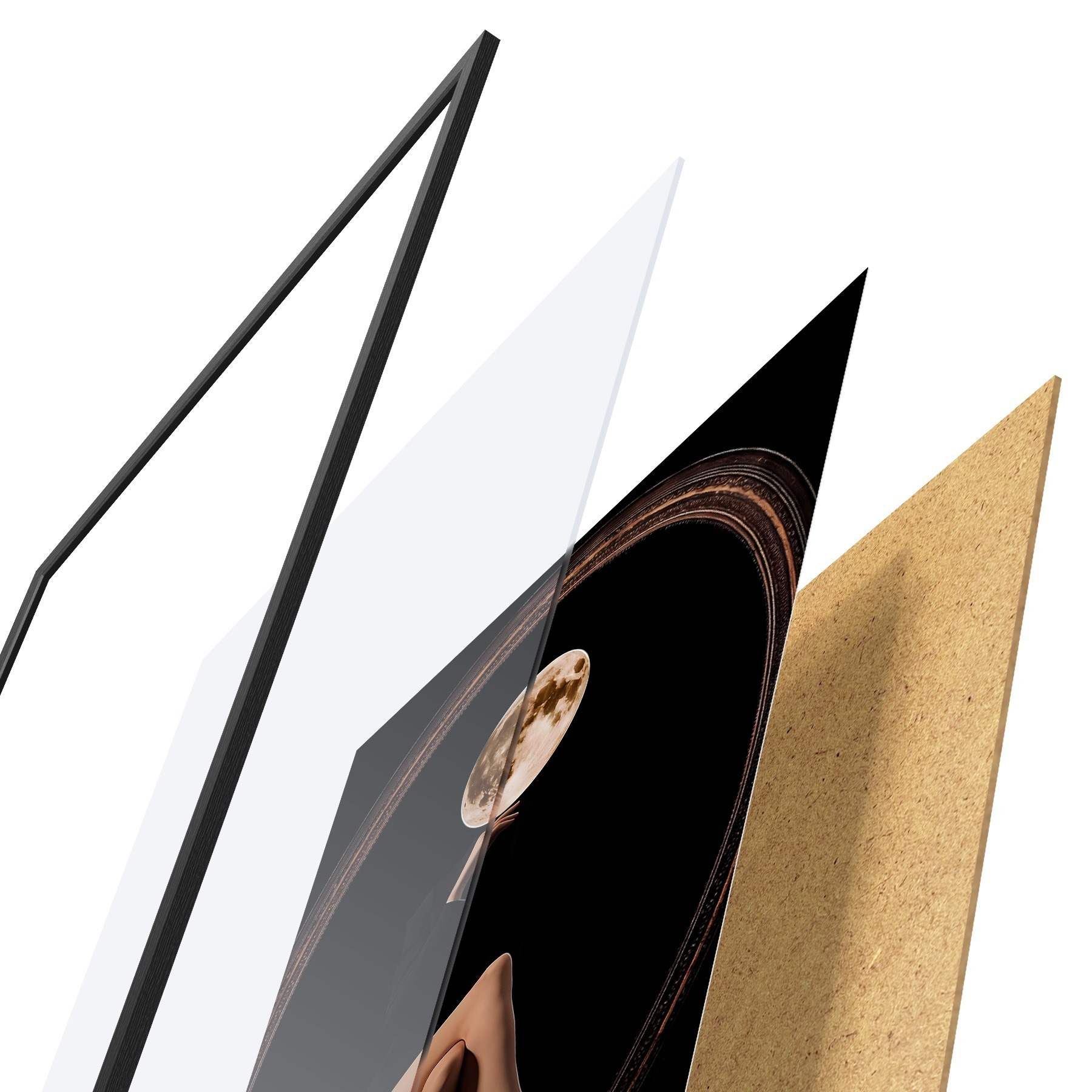 Il poster è composto da cornice, plexiglass, immagine stampata e supporto in truciolato. Il poster può essere immediatamente appeso alla parete grazie ai supporti sul retro.