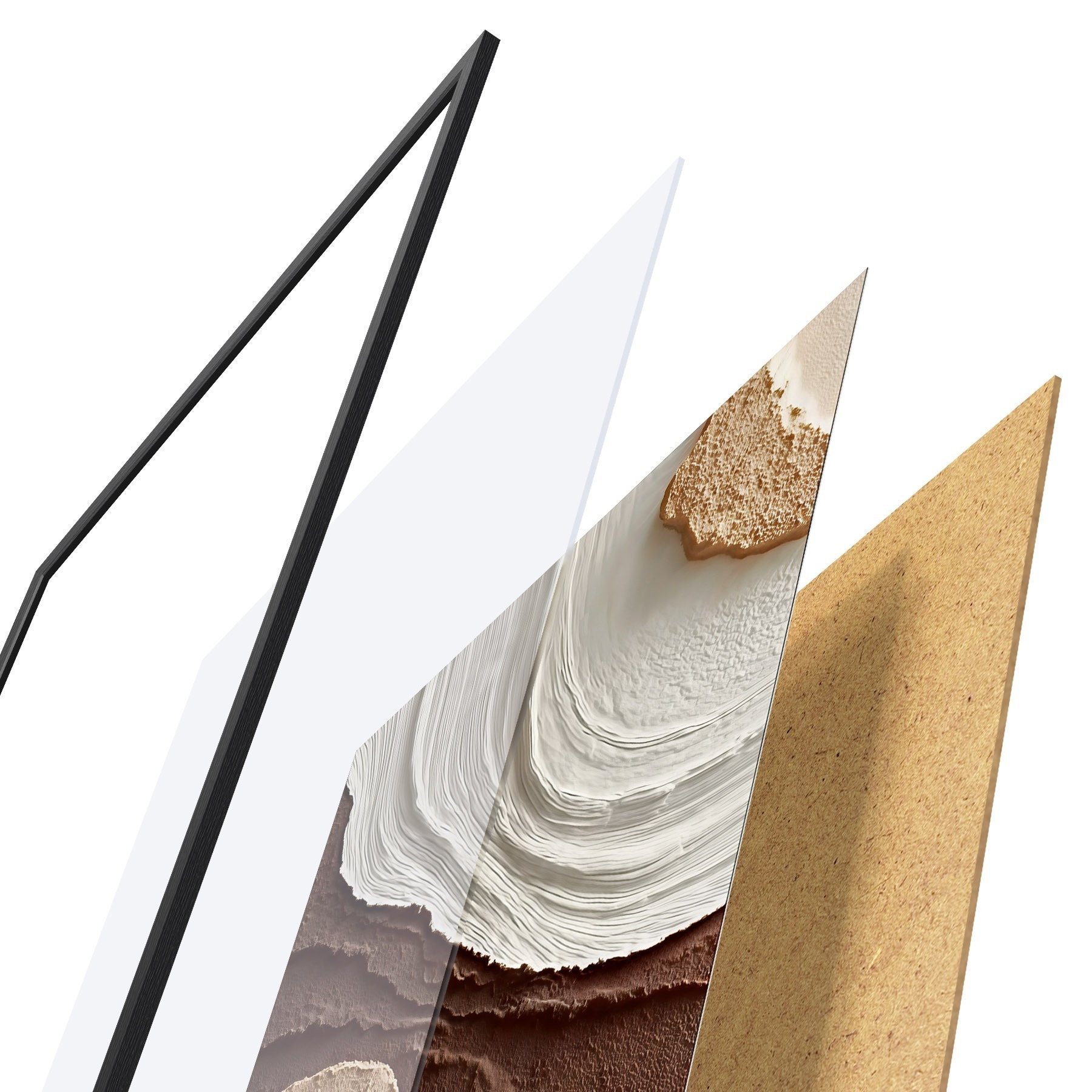 Il poster è composto da cornice, plexiglass, immagine stampata e supporto in truciolato. Il poster può essere immediatamente appeso alla parete grazie ai supporti sul retro.
