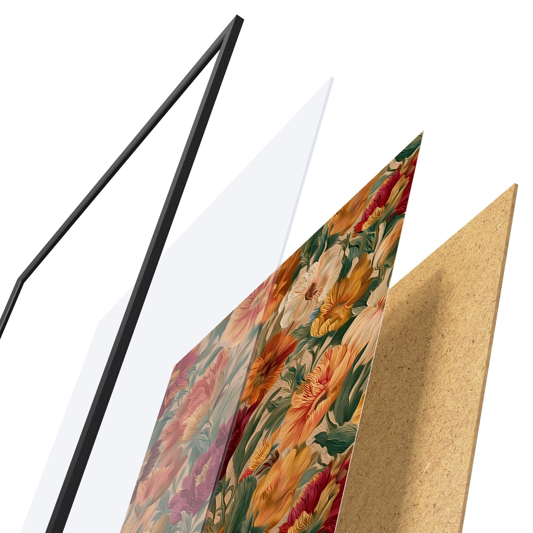 Il poster è composto da cornice, plexiglass, immagine stampata e supporto in truciolato. Il poster può essere immediatamente appeso alla parete grazie ai supporti sul retro.