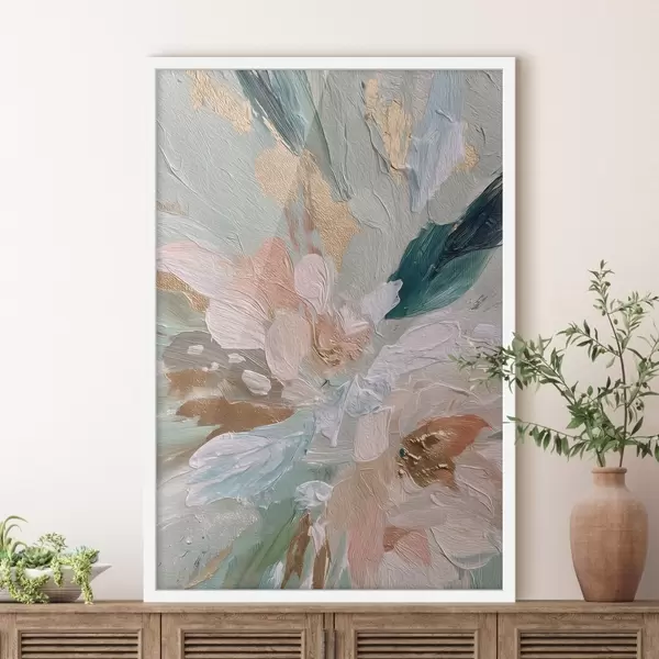 Poster Tratti floreali pastello con macchie gialle f45899
