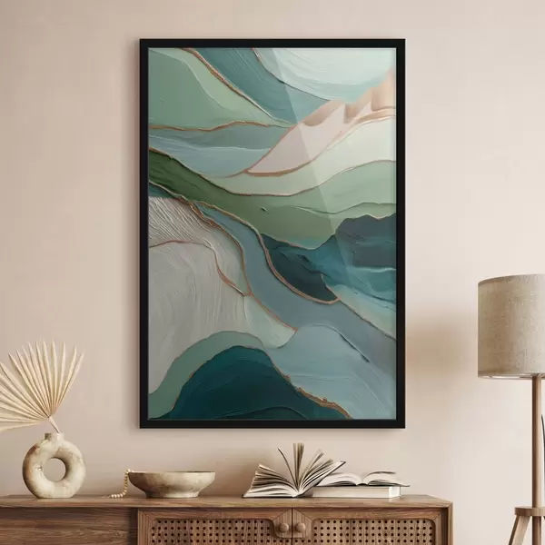 Poster Astrazione verde stratificata con linee gialle e profondità Nr f45902