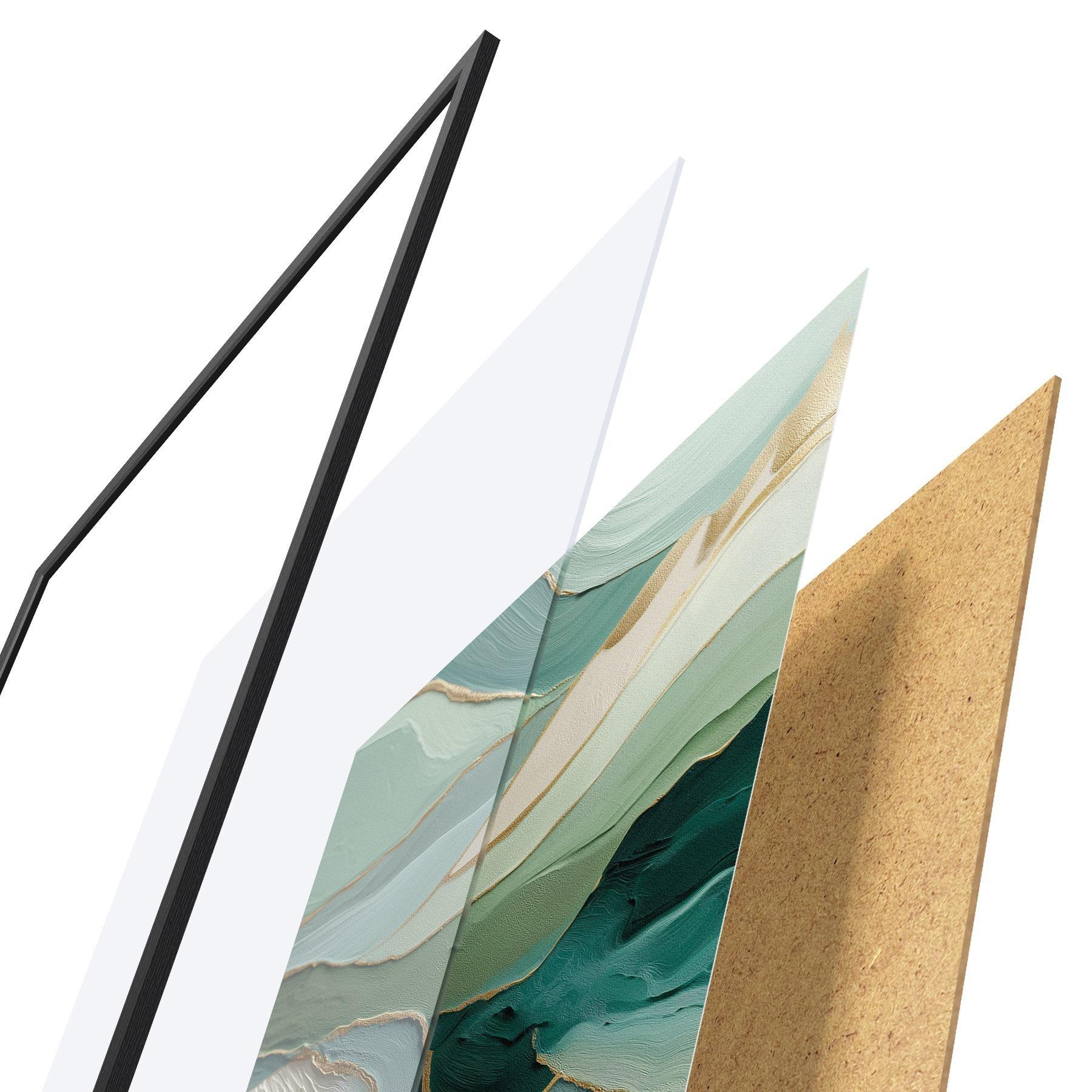 Il poster è composto da cornice, plexiglass, immagine stampata e supporto in truciolato. Il poster può essere immediatamente appeso alla parete grazie ai supporti sul retro.