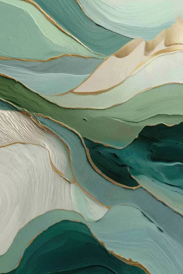 Poster Astrazione verde stratificata con linee gialle e profondità Nr f45902