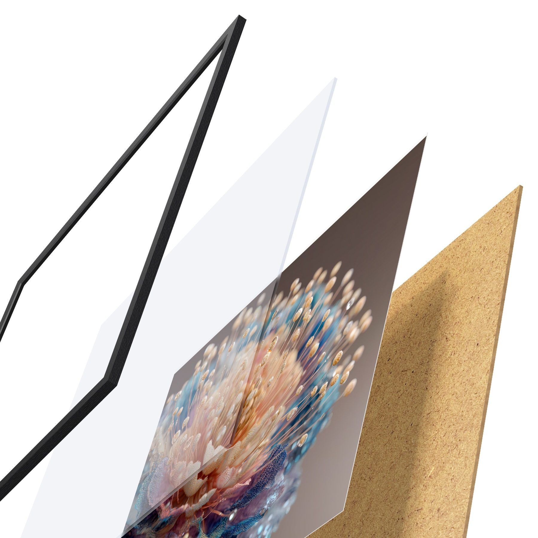Il poster è composto da cornice, plexiglass, immagine stampata e supporto in truciolato. Il poster può essere immediatamente appeso alla parete grazie ai supporti sul retro.