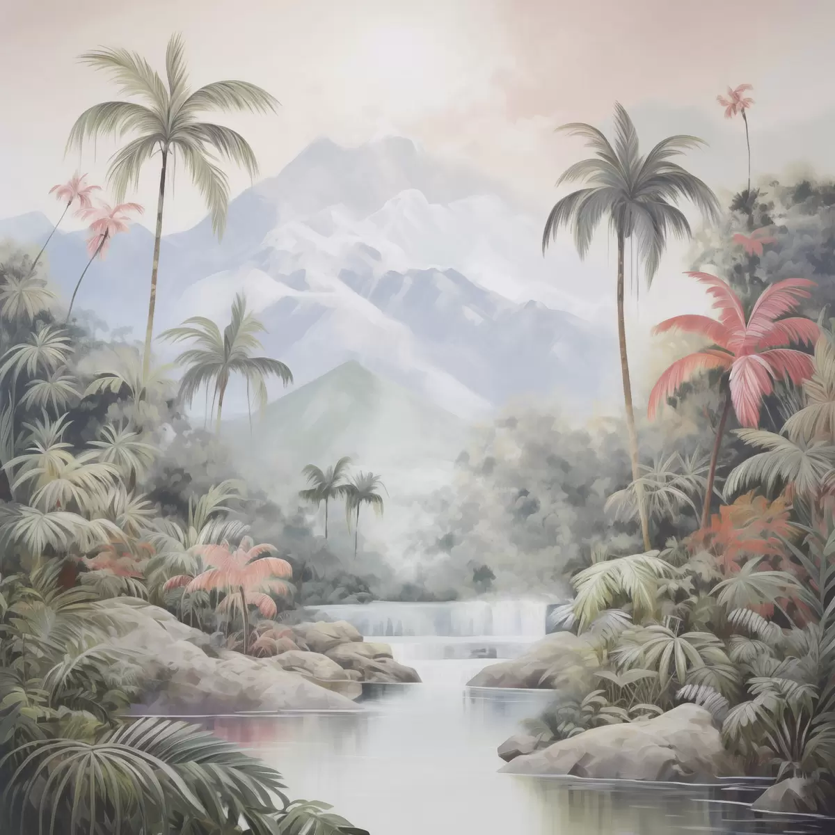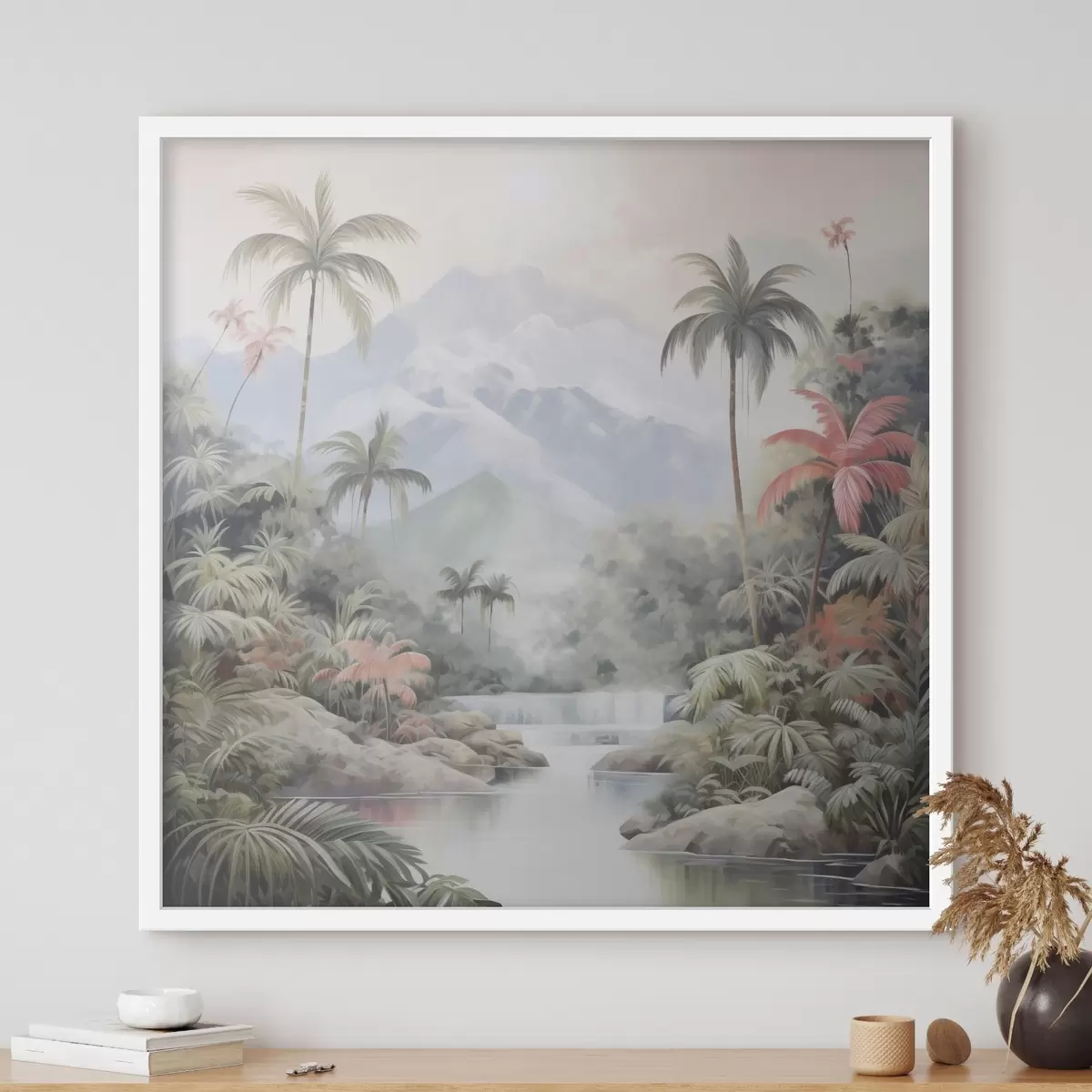 Poster Fiume nella foresta tropicale di fronte alle montagne f45913