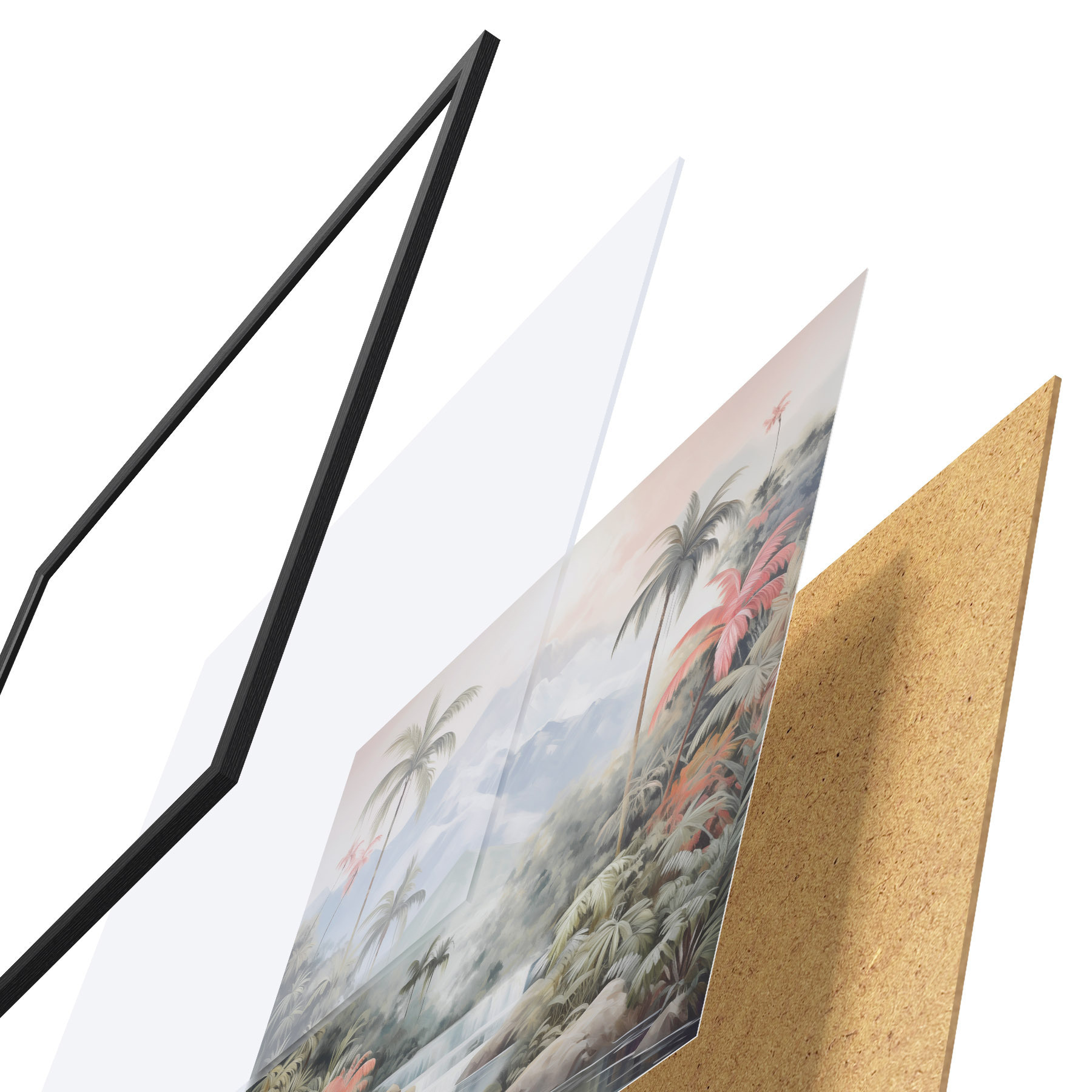 Il poster è composto da cornice, plexiglass, immagine stampata e supporto in truciolato. Il poster può essere immediatamente appeso alla parete grazie ai supporti sul retro.