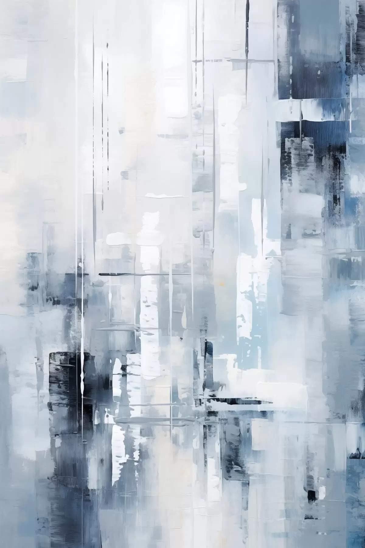 Poster Imitazione di pittura astratta con colori blu, grigio e bianco, linee verticali e forme geometriche Nr f45927