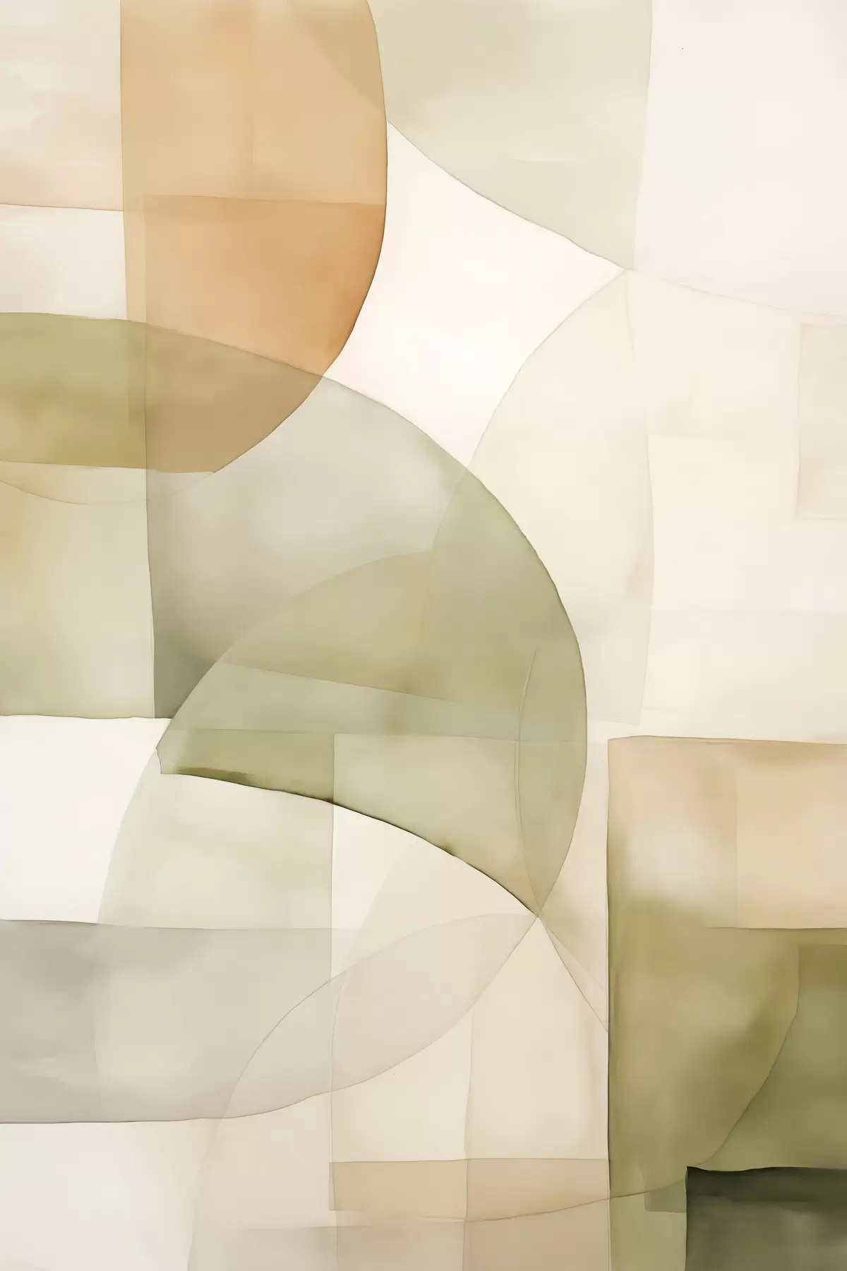 Poster Forme geometriche astratte con texture acquerellata nei toni del verde, marrone e beige Nr f45929
