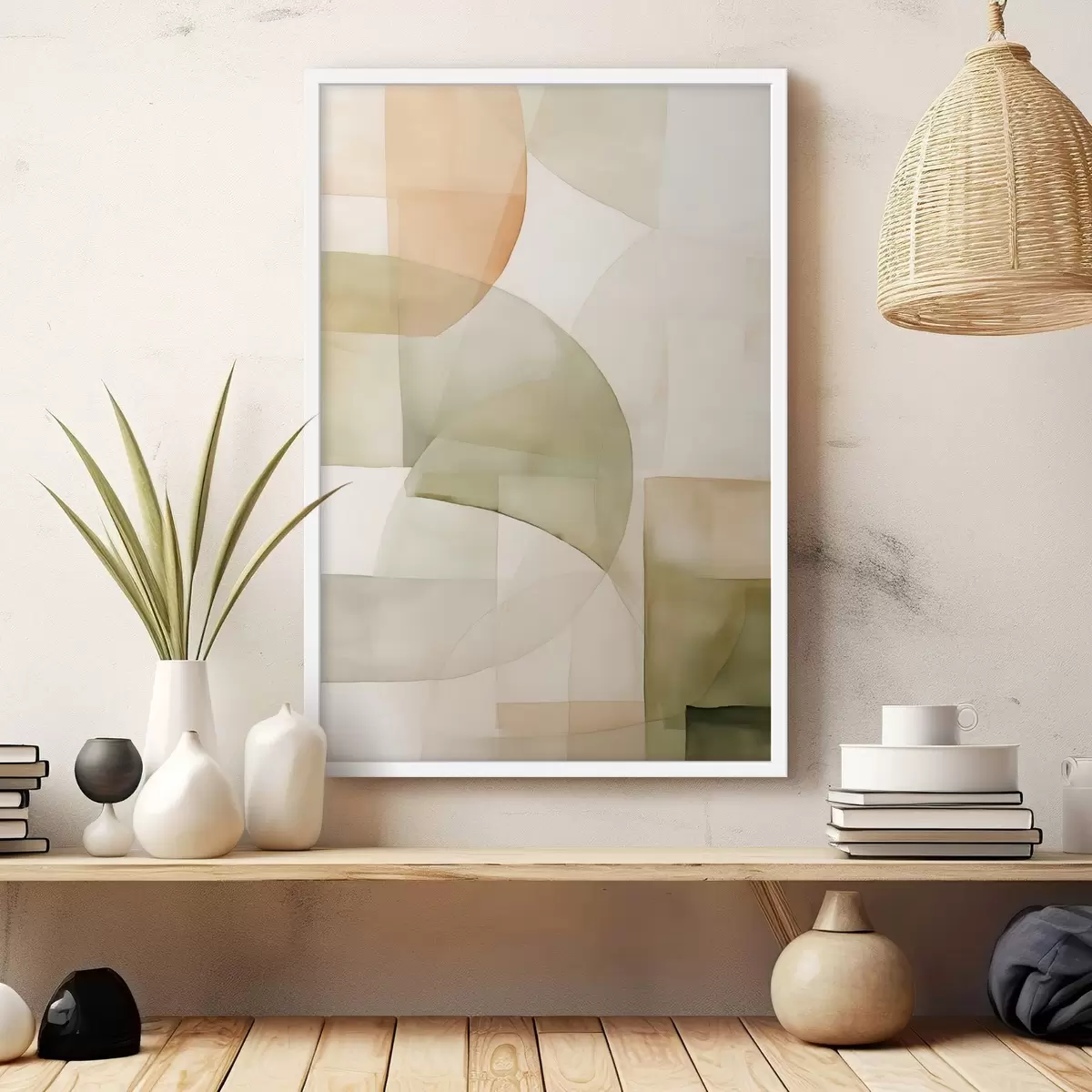 Poster Forme geometriche astratte con texture acquerellata nei toni del verde, marrone e beige f45929
