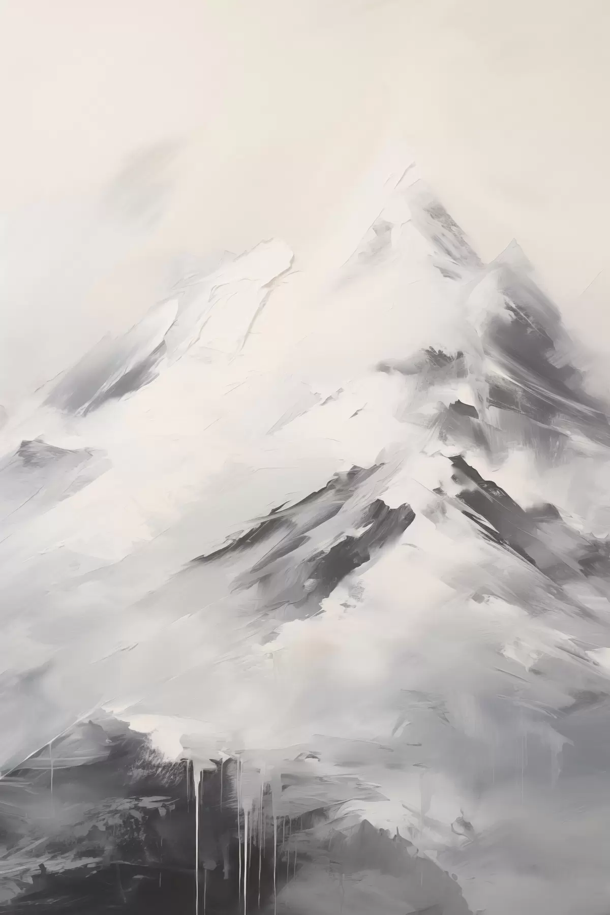 Poster Cime innevate con ombre grigie, cielo grigio, pennellate, texture, minimalista f45932