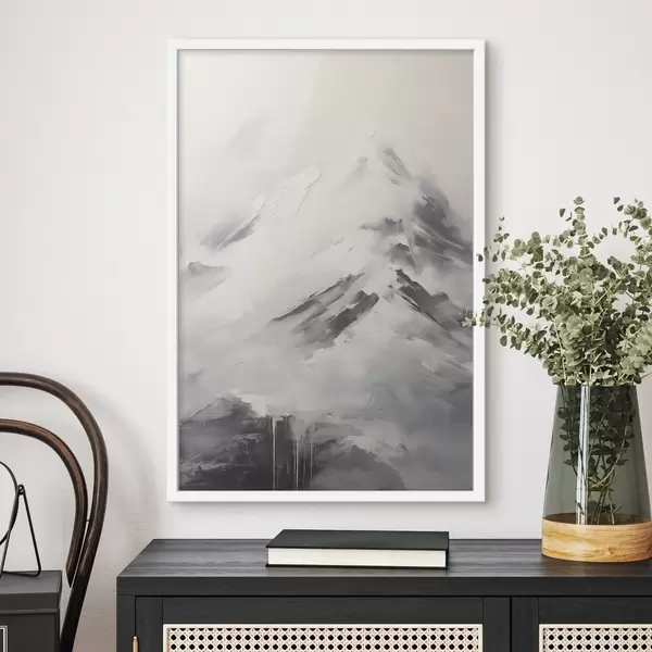 Poster Cime innevate con ombre grigie, cielo grigio, pennellate, texture, minimalista Nr f45932
