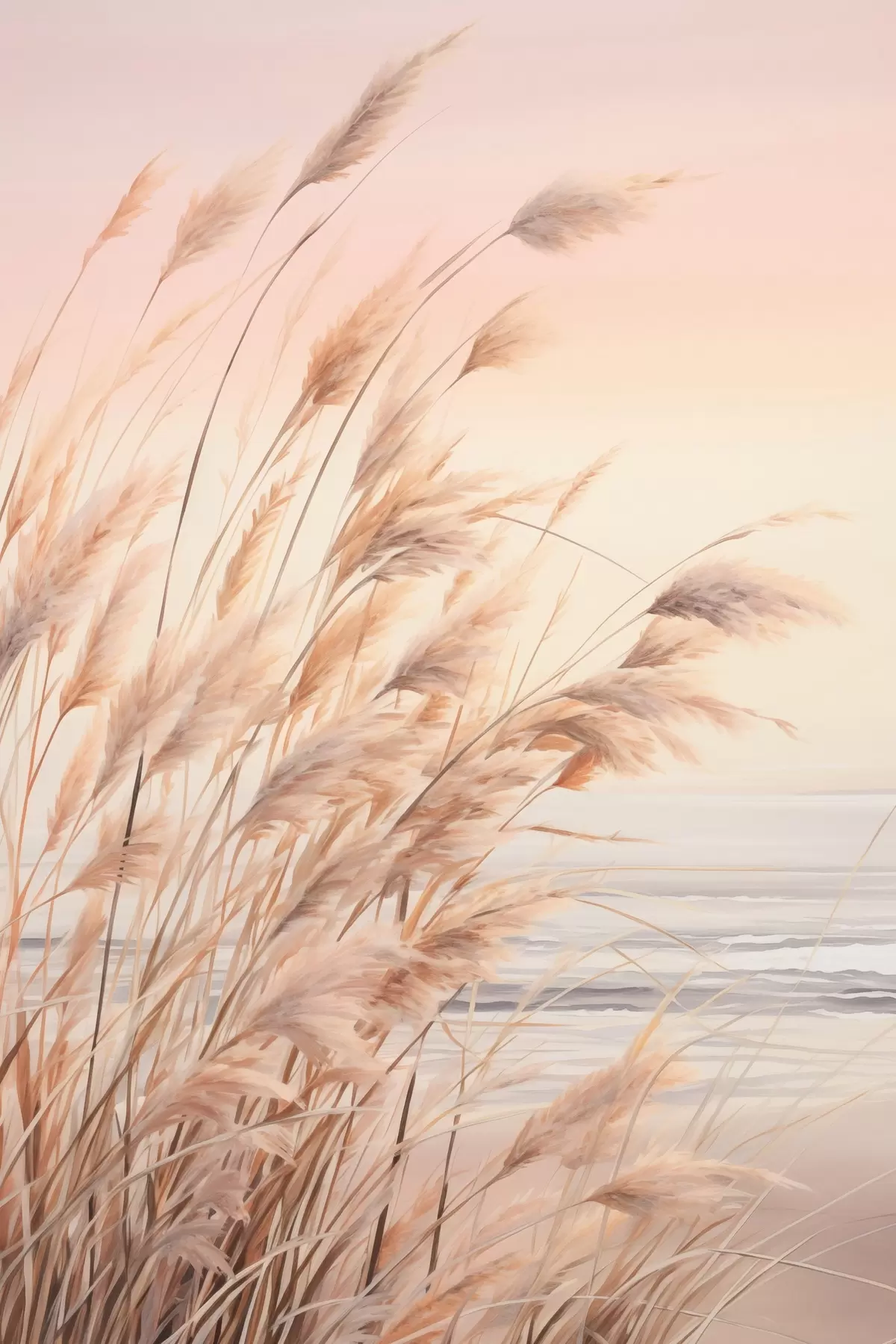 Poster Erba della Pampa con una tavolozza di colori arancione pastello, cielo rosa chiaro, un paesaggio tranquillo f45934