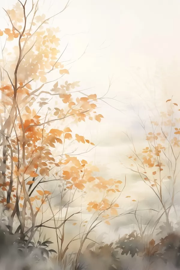 Poster Alberi autunnali con foglie e rami arancioni, stile acquerello morbido, pennellate delicate Nr f45941
