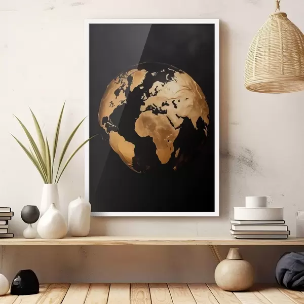 Poster Globo terrestre astratto giallo con texture, pianeta su sfondo nero, arte moderna minimalista Nr f45942