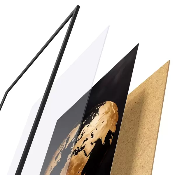 Il poster è composto da cornice, plexiglass, immagine stampata e supporto in truciolato. Il poster può essere immediatamente appeso alla parete grazie ai supporti sul retro.