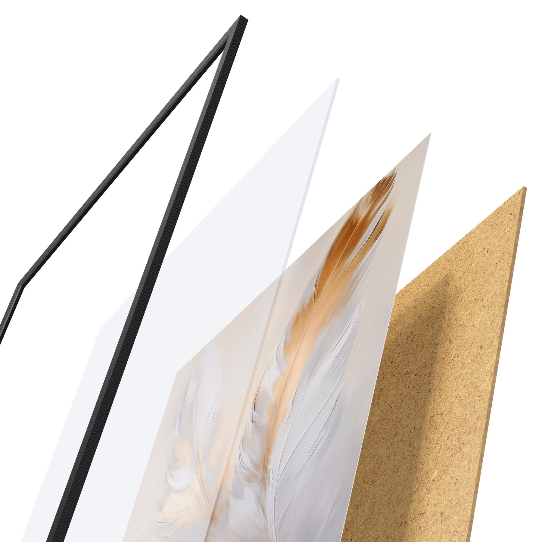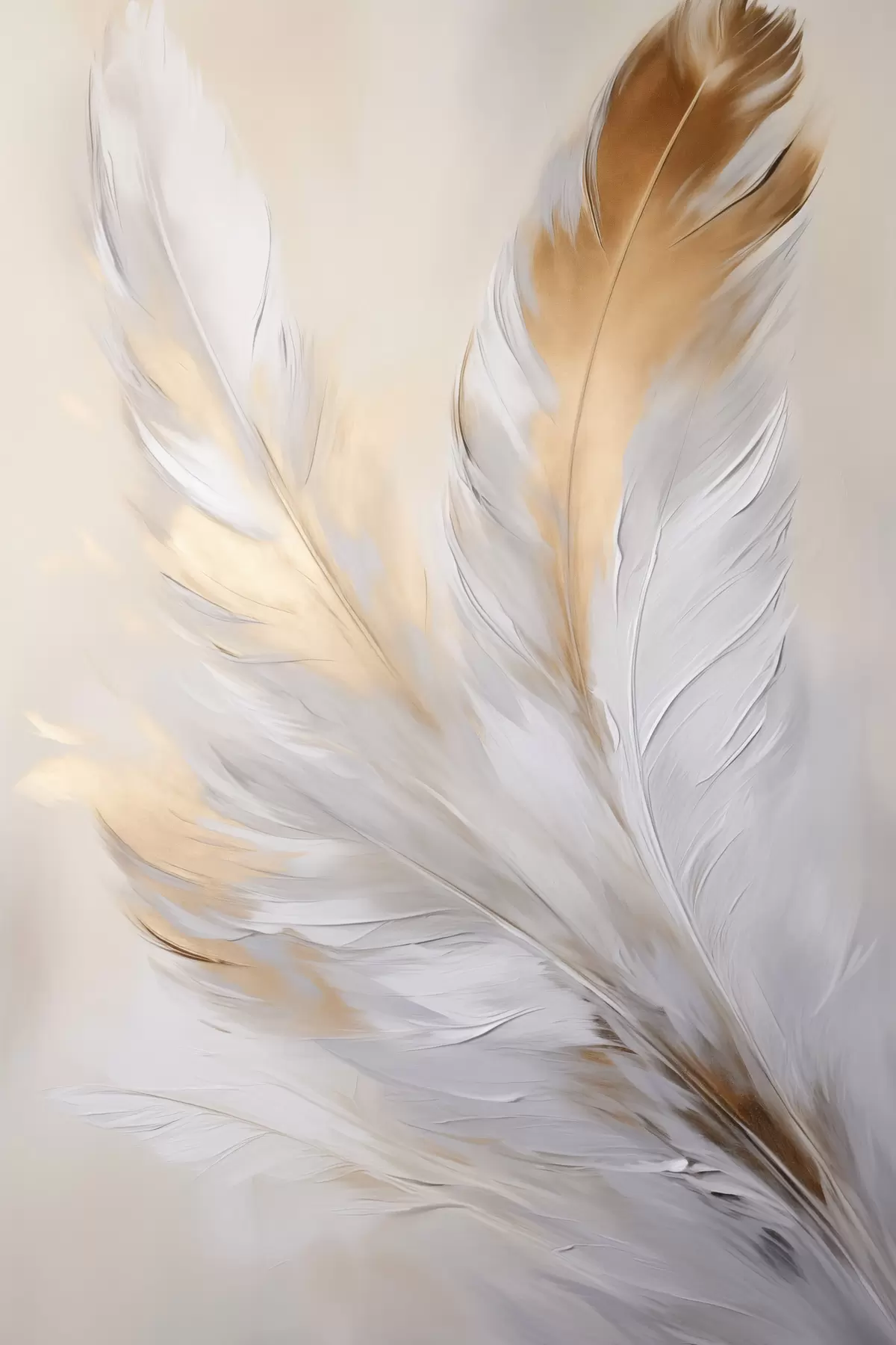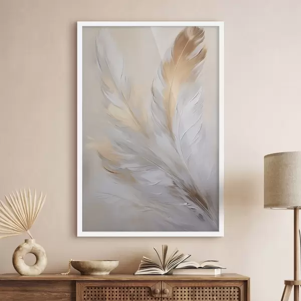Poster Piume con accenti arancioni, illuminazione soffusa, composizione minimalista strutturata, arte moderna Nr f45944