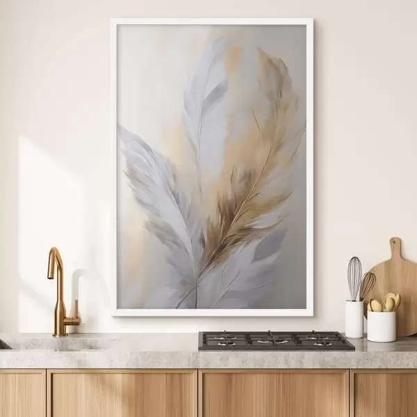 Poster Piume con accenti arancioni, composizione minimalista strutturata, arte moderna Nr f45945
