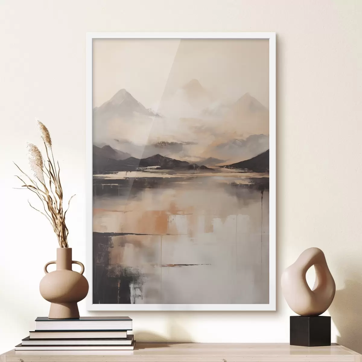 Poster Un dipinto con texture paesaggistica che imita montagne e un lago Nr f45950