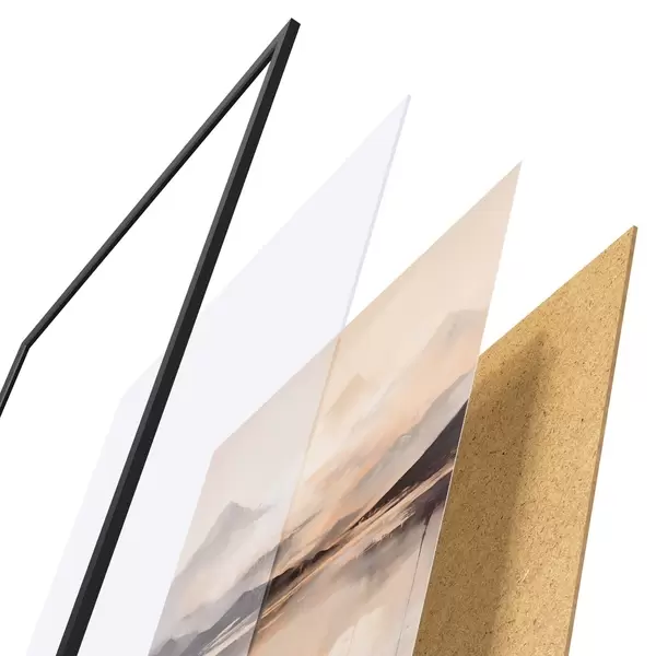 Il poster è composto da cornice, plexiglass, immagine stampata e supporto in truciolato. Il poster può essere immediatamente appeso alla parete grazie ai supporti sul retro.