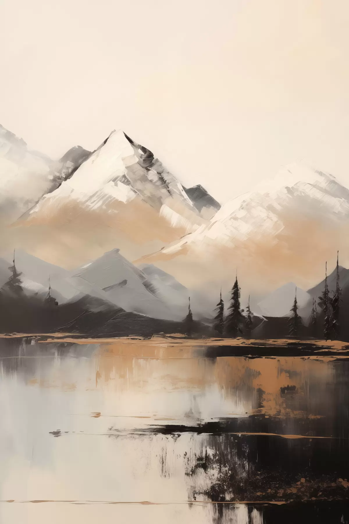 Poster Montagne innevate con alcuni alberi davanti a un lago f45951