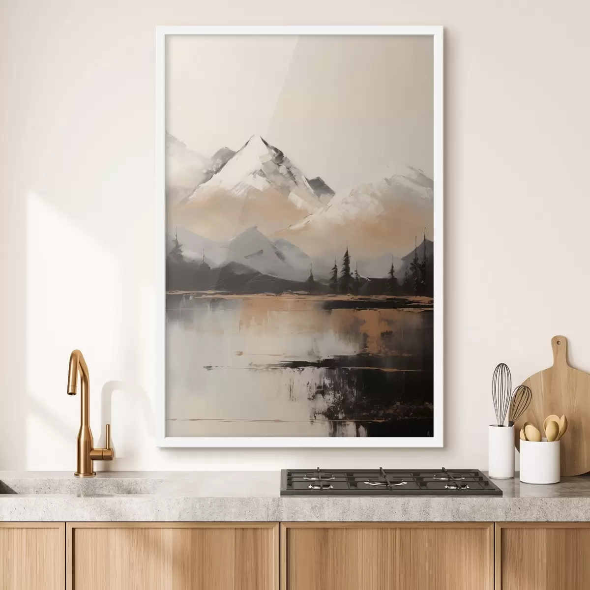 Poster Montagne innevate con alcuni alberi davanti a un lago Nr f45951