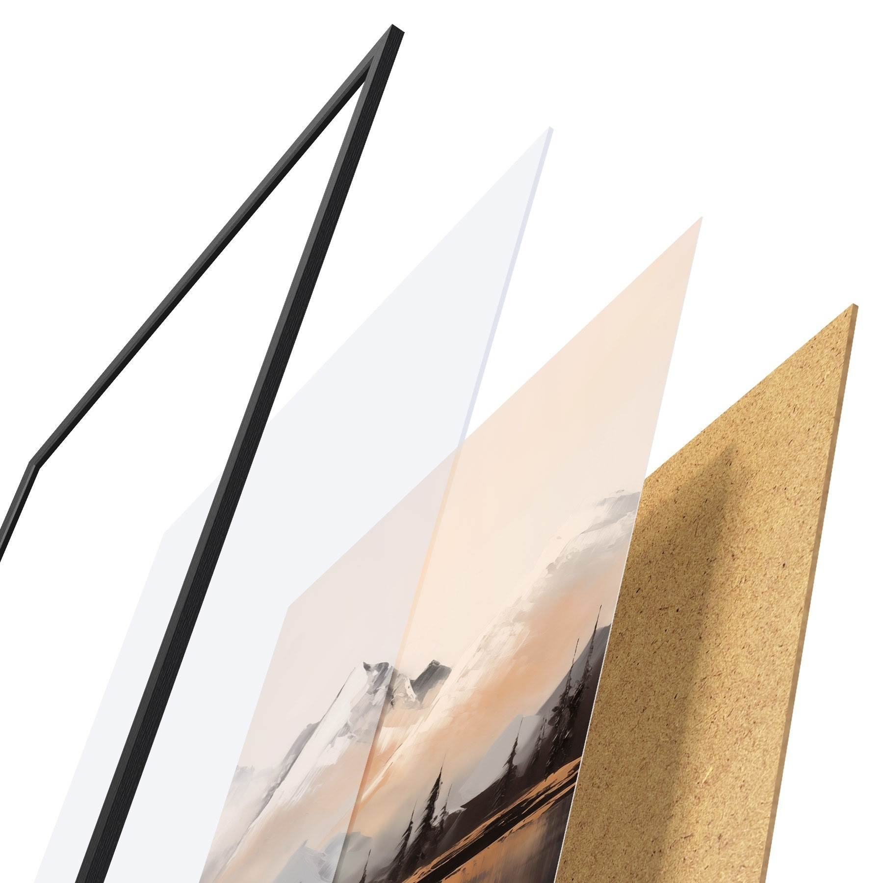 Il poster è composto da cornice, plexiglass, immagine stampata e supporto in truciolato. Il poster può essere immediatamente appeso alla parete grazie ai supporti sul retro.