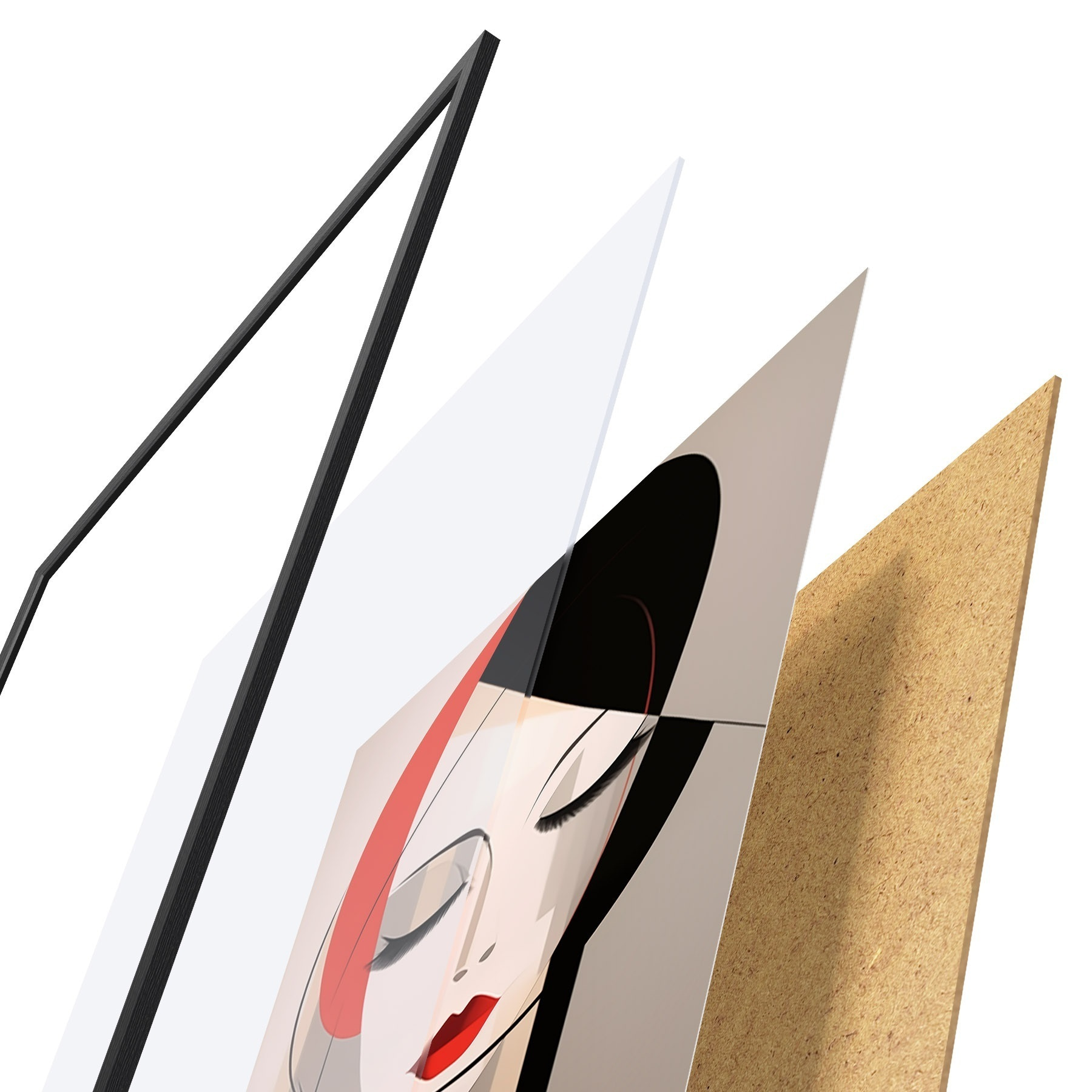Il poster è composto da cornice, plexiglass, immagine stampata e supporto in truciolato. Il poster può essere immediatamente appeso alla parete grazie ai supporti sul retro.