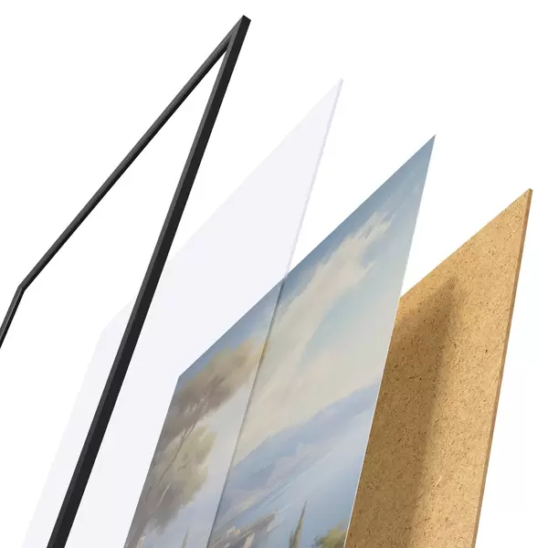 Il poster è composto da cornice, plexiglass, immagine stampata e supporto in truciolato. Il poster può essere immediatamente appeso alla parete grazie ai supporti sul retro.