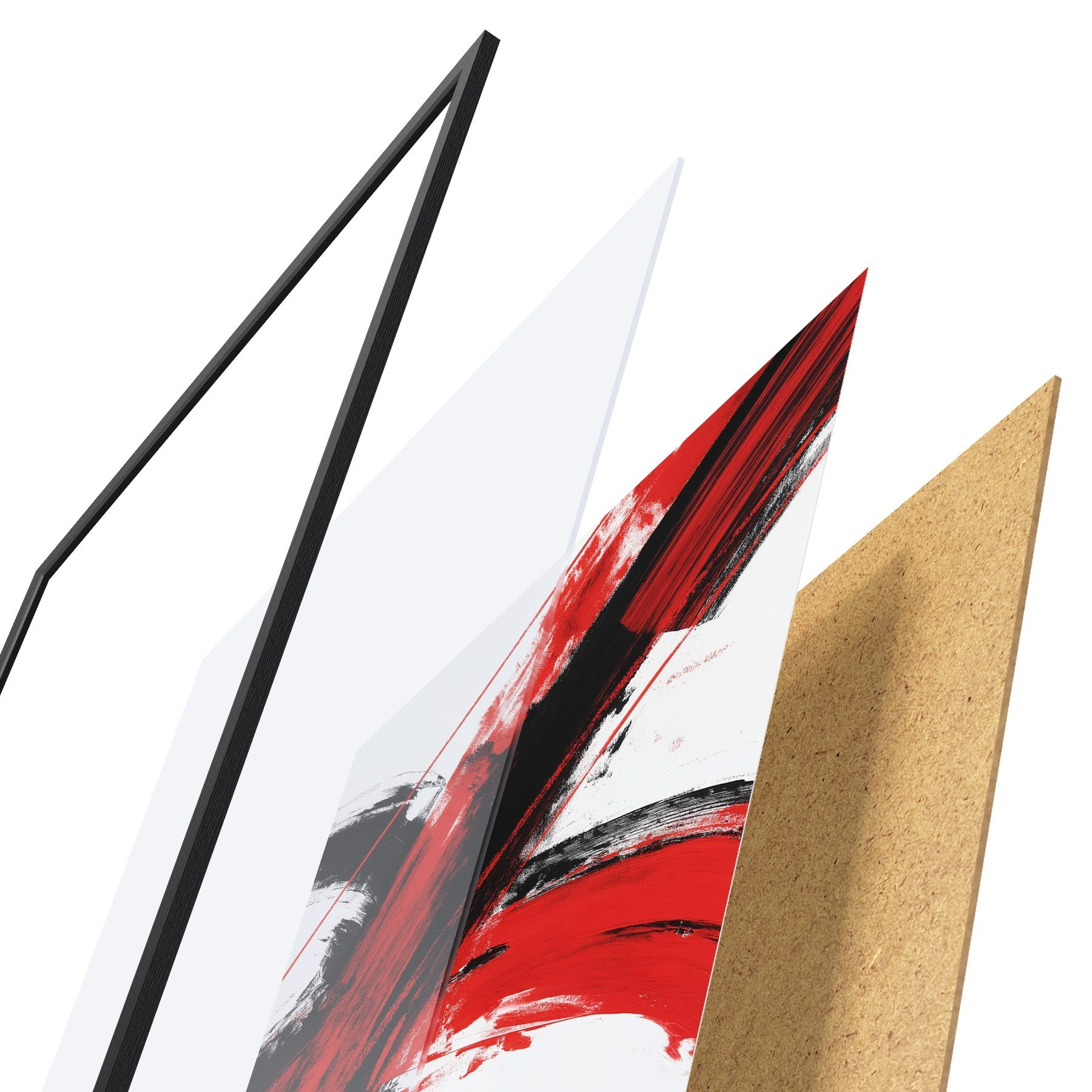 Il poster è composto da cornice, plexiglass, immagine stampata e supporto in truciolato. Il poster può essere immediatamente appeso alla parete grazie ai supporti sul retro.
