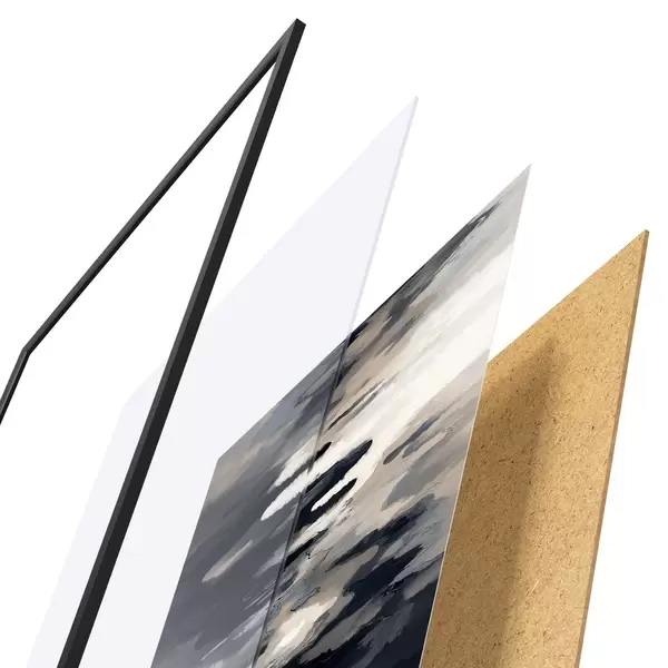 Il poster è composto da cornice, plexiglass, immagine stampata e supporto in truciolato. Il poster può essere immediatamente appeso alla parete grazie ai supporti sul retro.