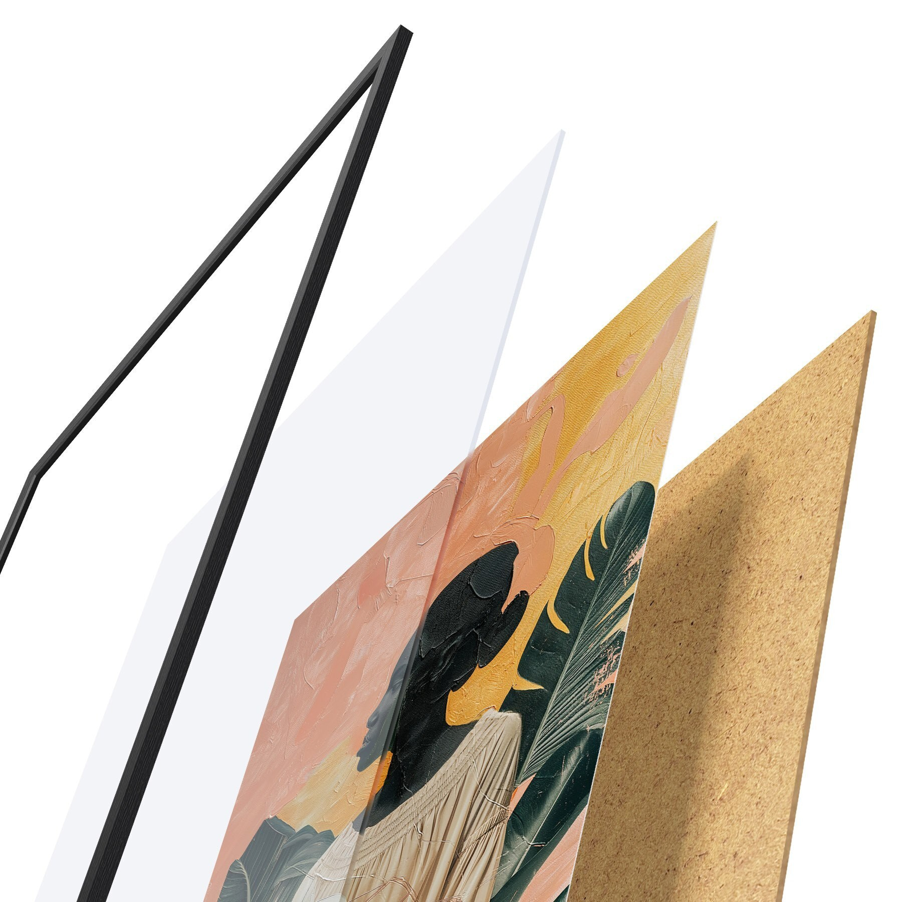 Il poster è composto da cornice, plexiglass, immagine stampata e supporto in truciolato. Il poster può essere immediatamente appeso alla parete grazie ai supporti sul retro.