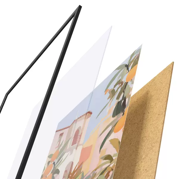 Il poster è composto da cornice, plexiglass, immagine stampata e supporto in truciolato. Il poster può essere immediatamente appeso alla parete grazie ai supporti sul retro.