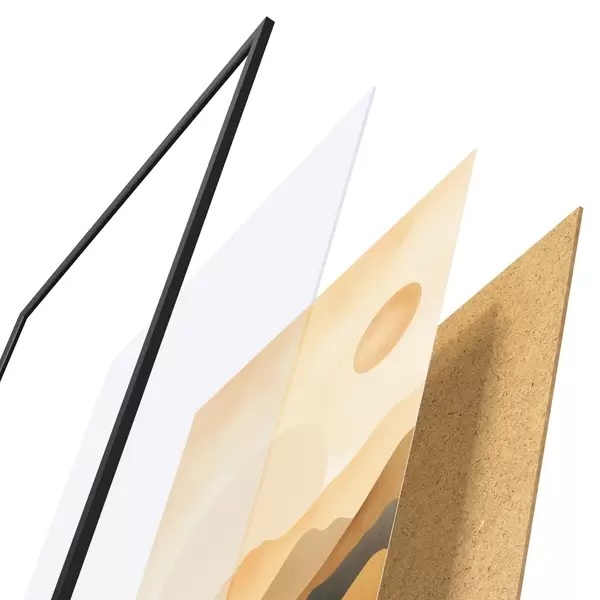 Il poster è composto da cornice, plexiglass, immagine stampata e supporto in truciolato. Il poster può essere immediatamente appeso alla parete grazie ai supporti sul retro.